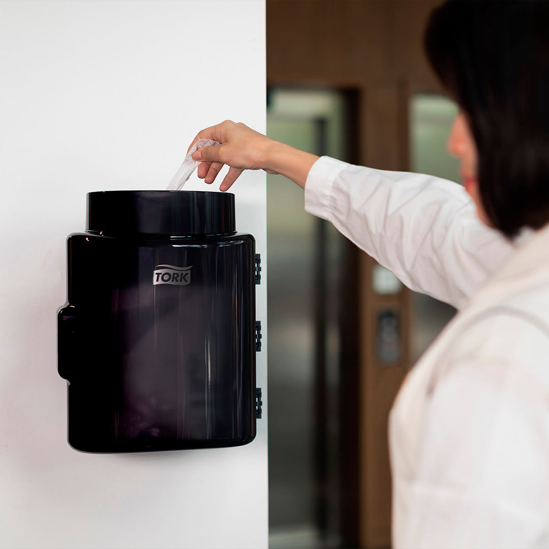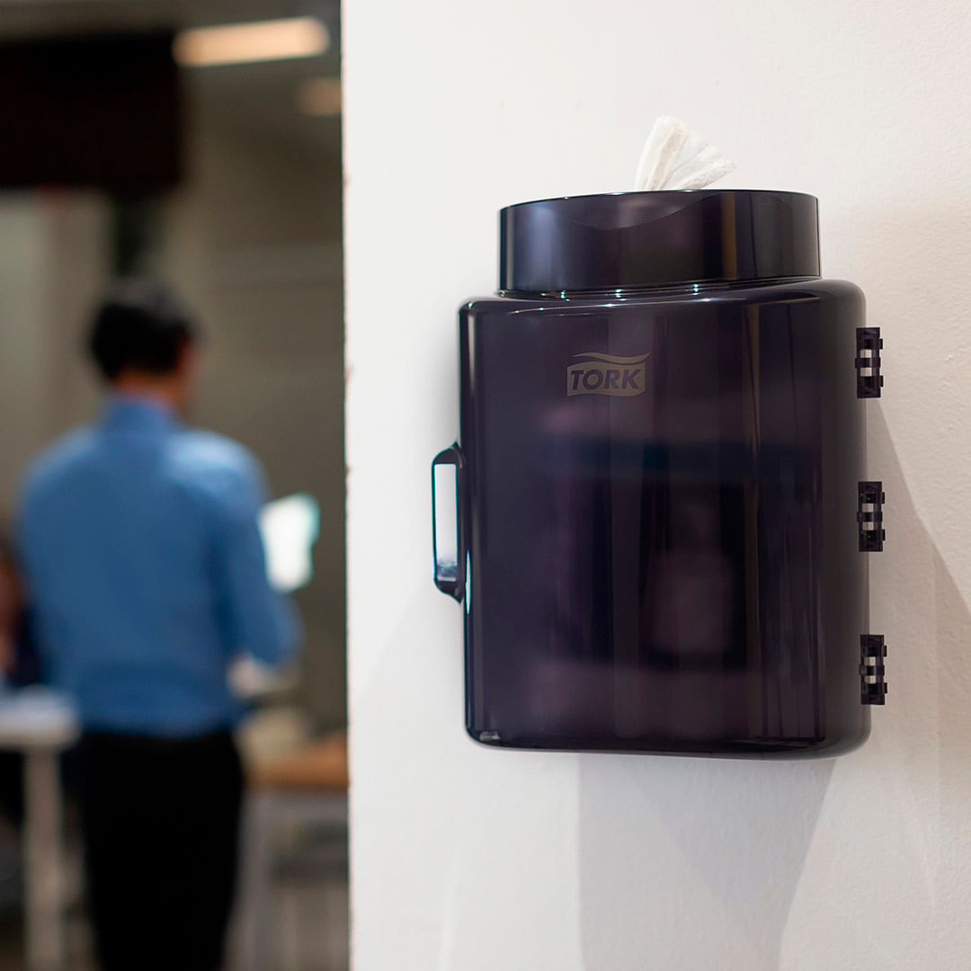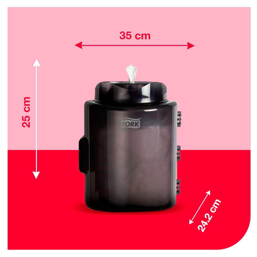 El dispensador para toallas húmedas desinfectantes es ideal para mantener las toallas húmedas y protegidas. Su boquilla permite tomar una toalla a la vez. Ten tus espacios muy ordenados y sanitizados con este dispensador. Su color humo le da un toque discreto y elegante.