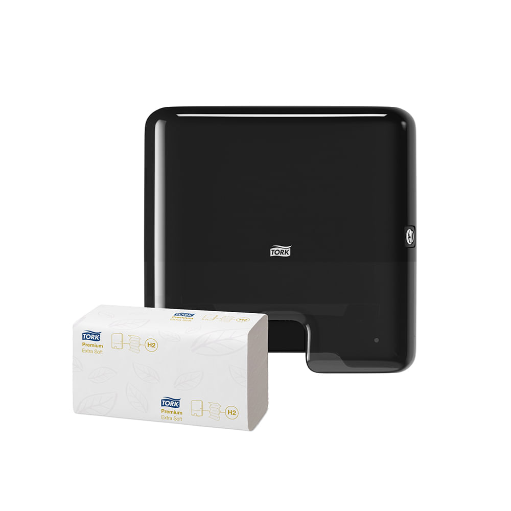 Toalla Interdoblada Premium HD 21 Paqs / 100 Hjs + Tork DispensadorToalla Xpress® Elevation Negro