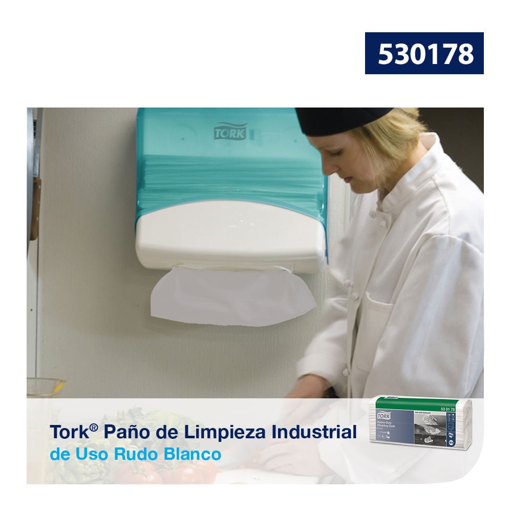 Los paños de limpieza para tareas pesadas Tork con tecnología exelCLEAN® son muy absorbentes, gruesos y duraderos. Pueden restregarse sin desmoronarse. Se pueden usar con la mayoría de solventes y remueven agua, aceite, grasa y manchas difíciles de forma rápida, mientras protegen las manos de calor y restos de metal. Ideal para usarse con el dispensador para paños de limpieza.
